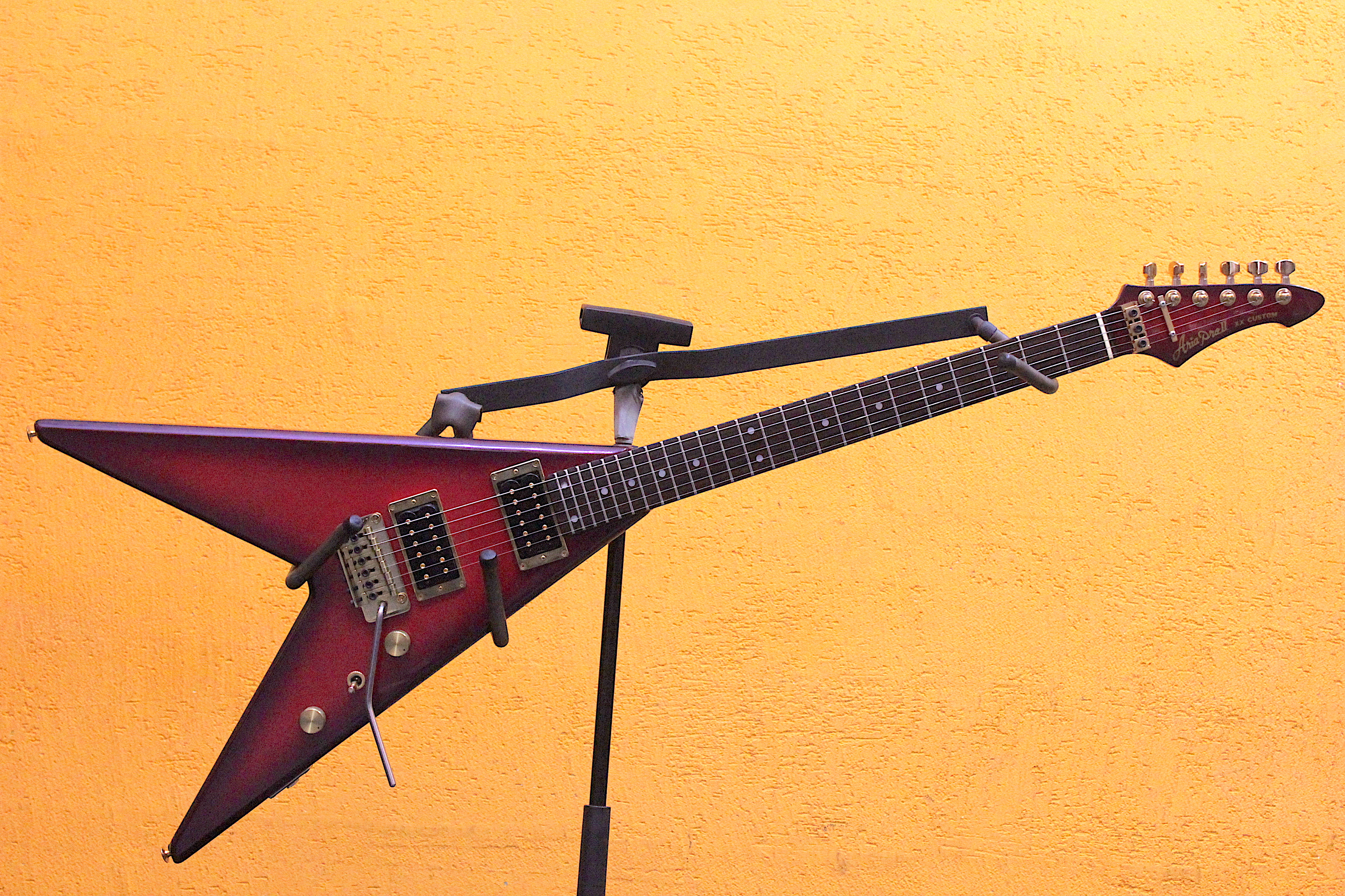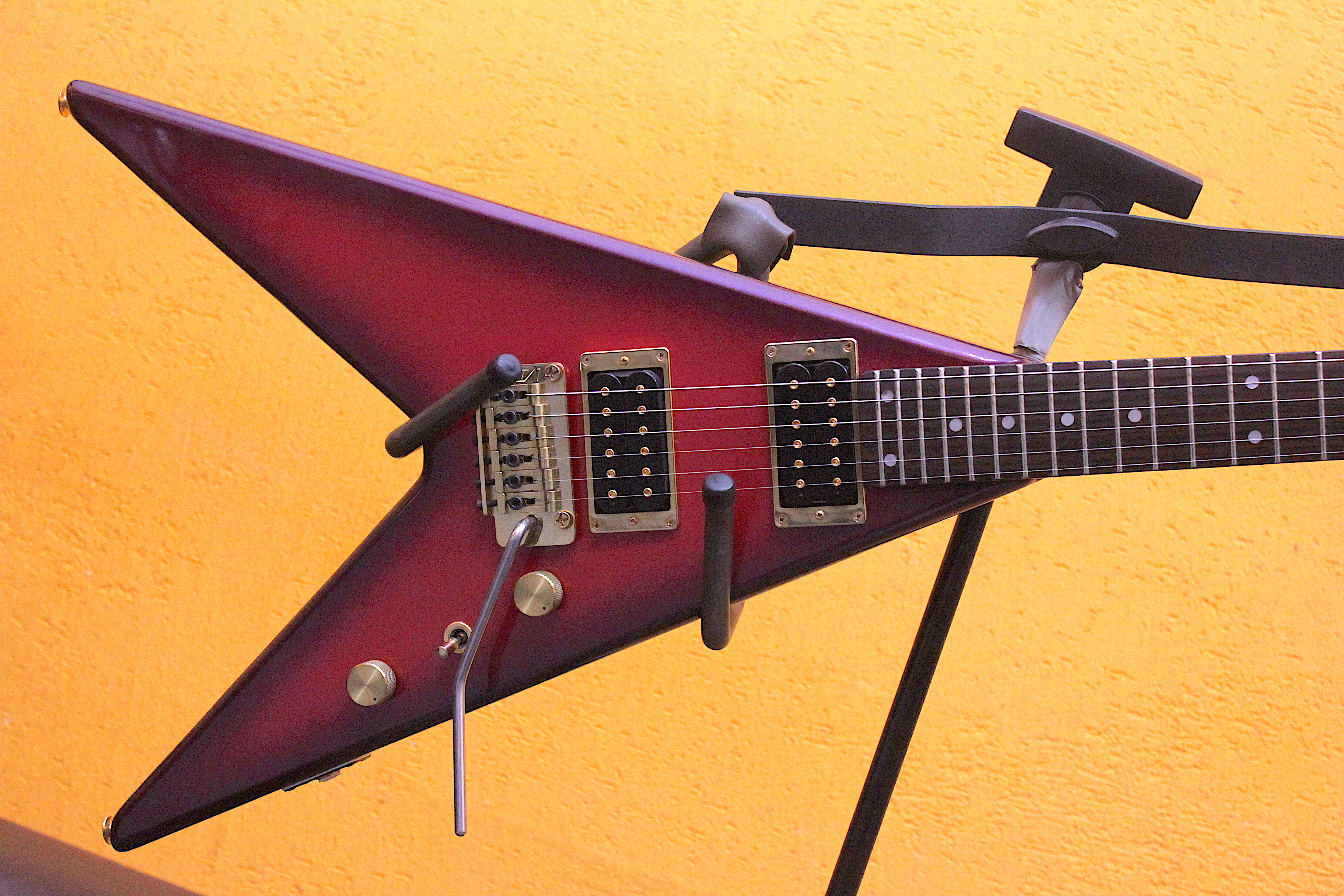Отличный японский вариант одной из самых узнаваемых форм электрогитары, ставшей настоящим символом трэш-метала и харда (хотя с такими «мётлами» были в своё время замечены и Чак Берри, и Дэйв Дэвис из The Kinks).