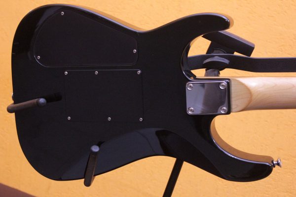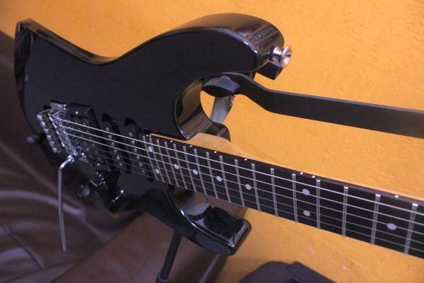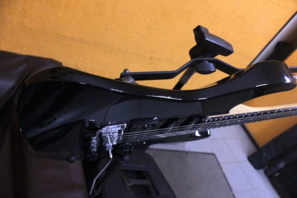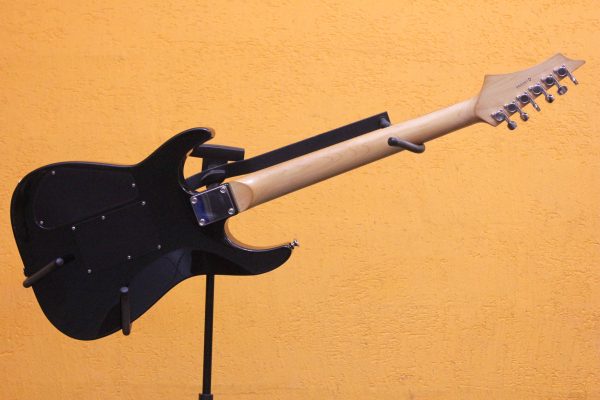 Гитара сразу выделяется удобной плоской формой грифа с 24 ладами, что позволяет бегать по струнам с особенной лёгкостью и осваивать самые сложные соло, и приличным флойд-роузом.