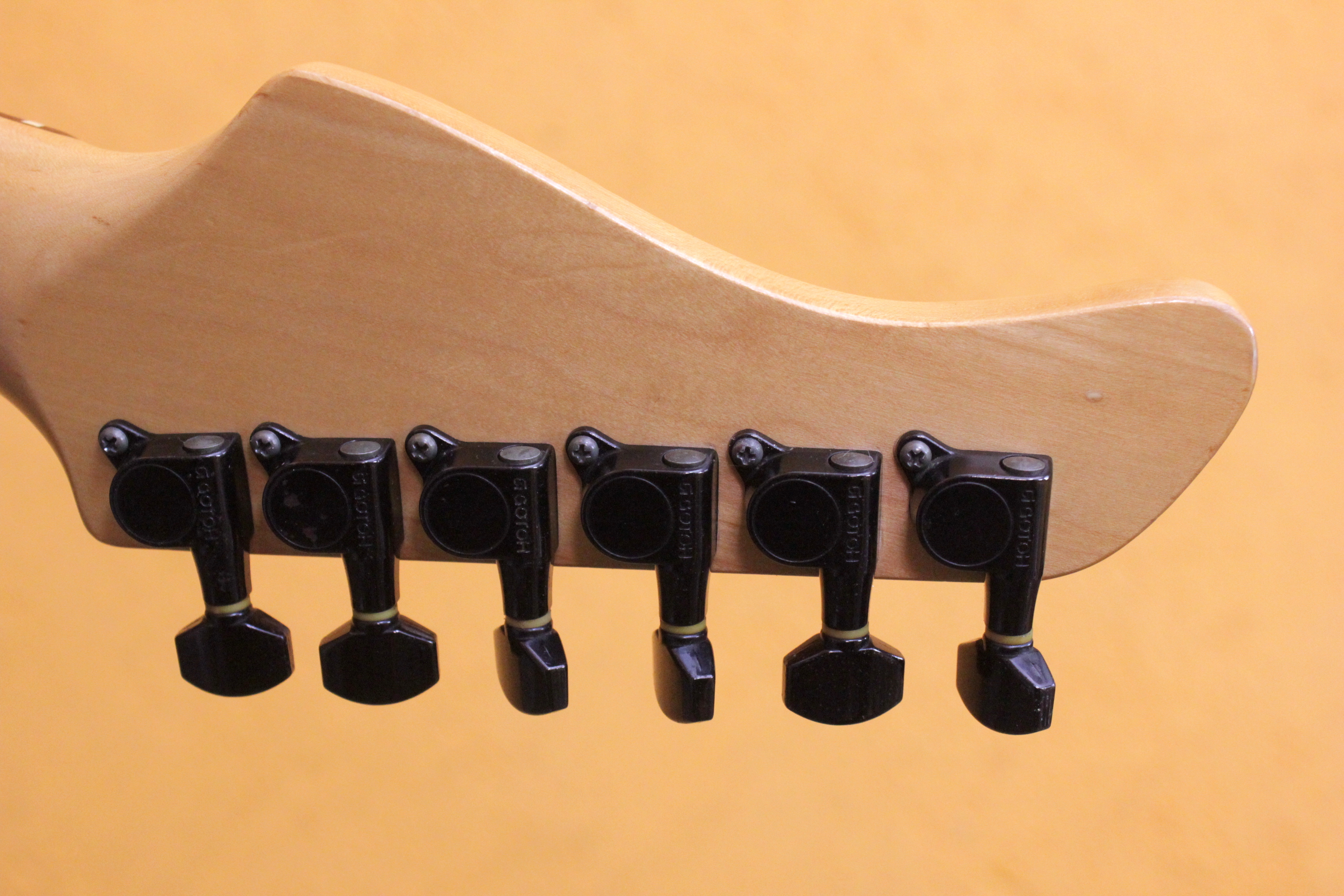 SFR-512 — прекрасный минималистичный суперстрат: 24 лада, колки Gotoh, винтажное тремоло — и сочетание чётких синглов в нэке и середине и огненного хамбакера c отсечкой в бридже.