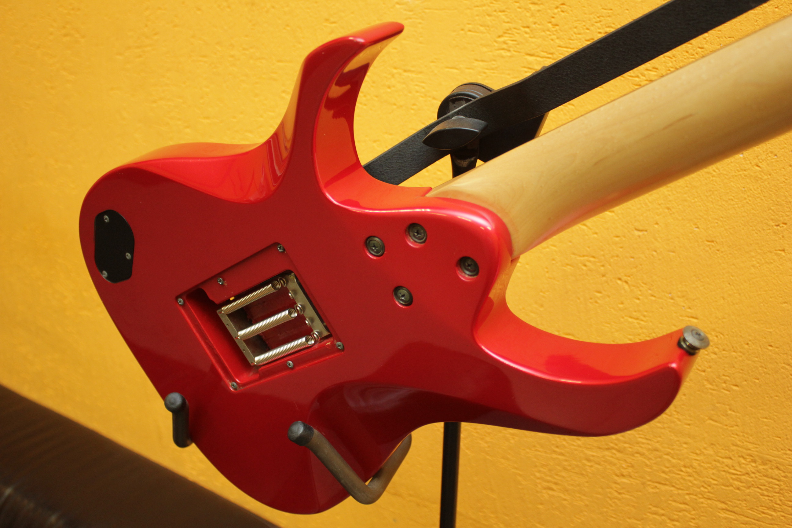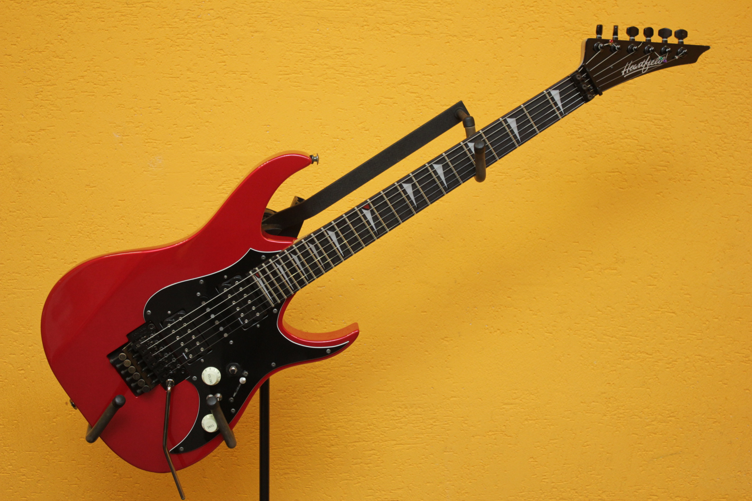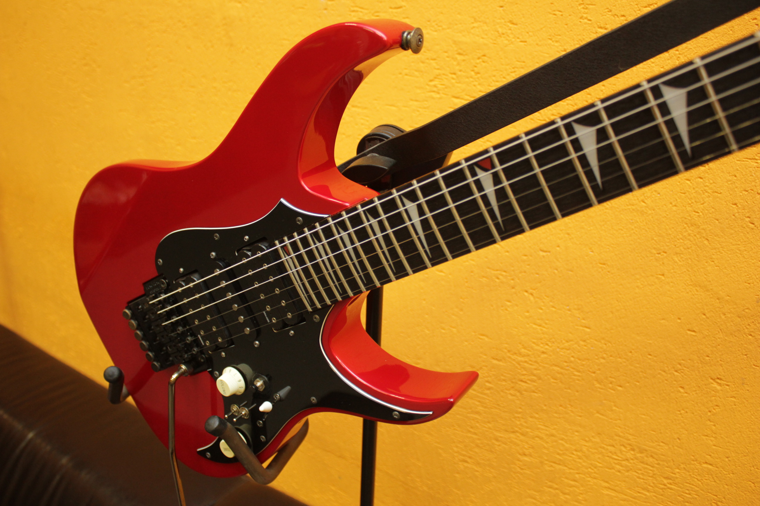 Машинка: Floyd Rose Original, которая безукоризненно держит строй. Звукосниматели: 2X Dimarzio H2 (старая версия Super 3 DP152) и Fender single coil pickup. Установлен киллпот и отсечка датчиков; мастер тон, позволяющий работать как с нижними, так и с верхними частотами.
