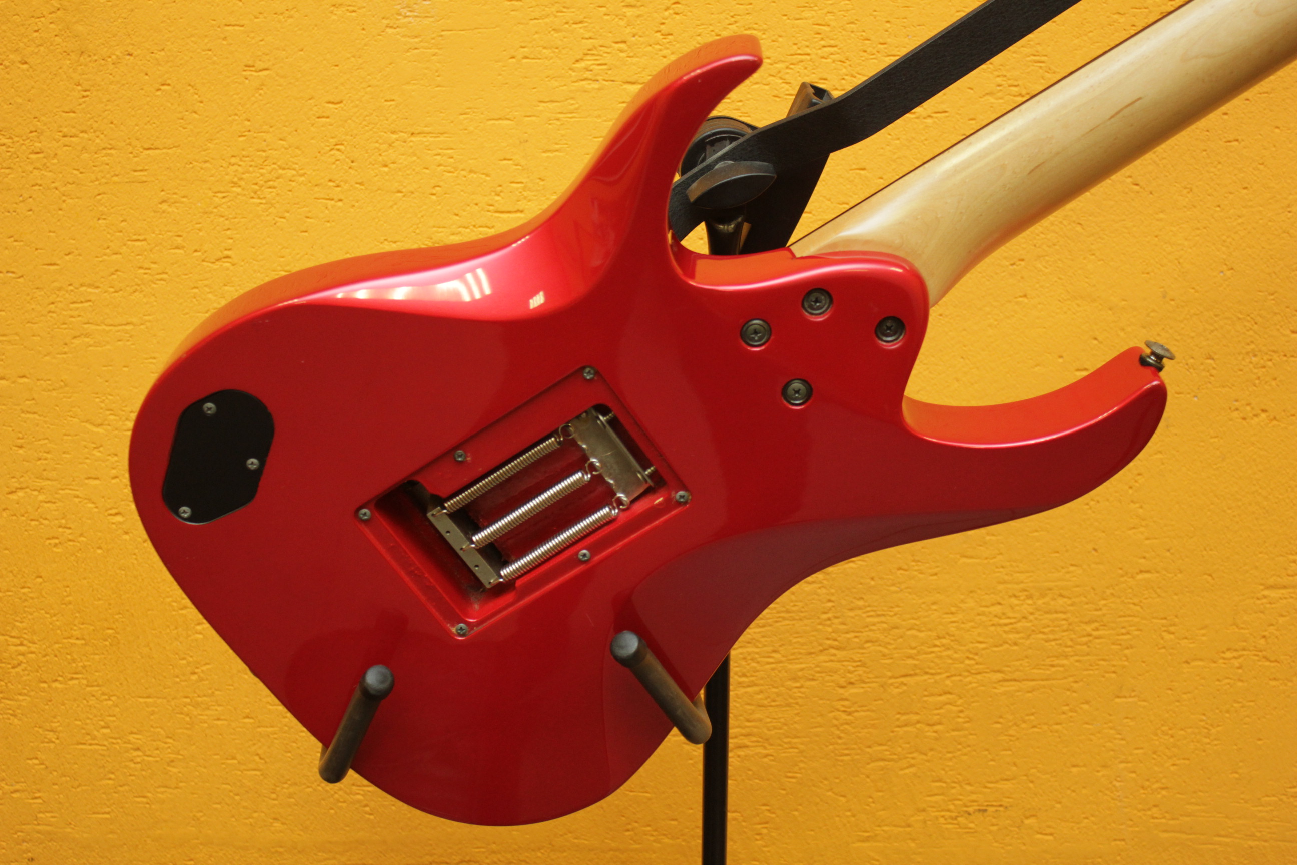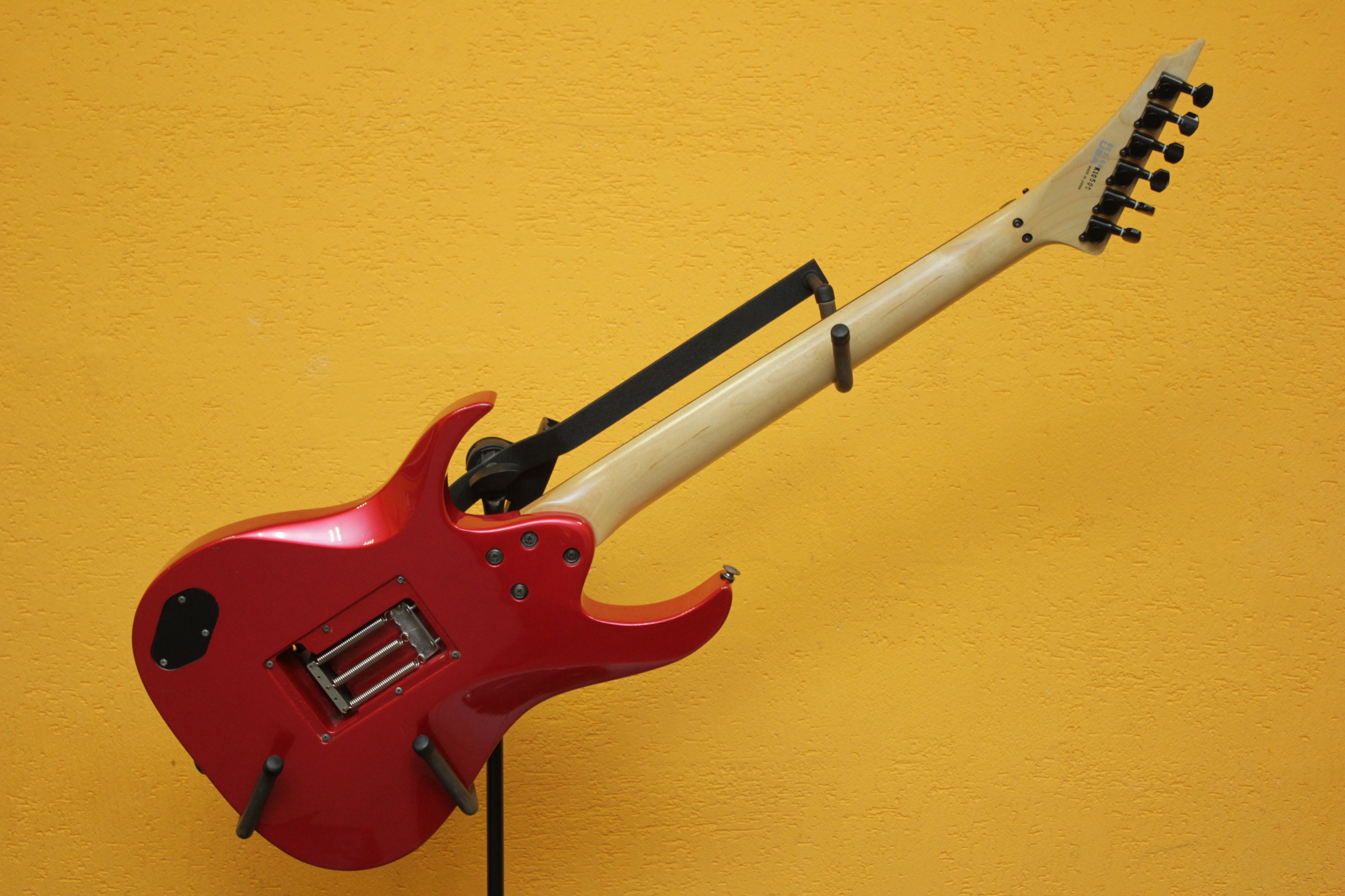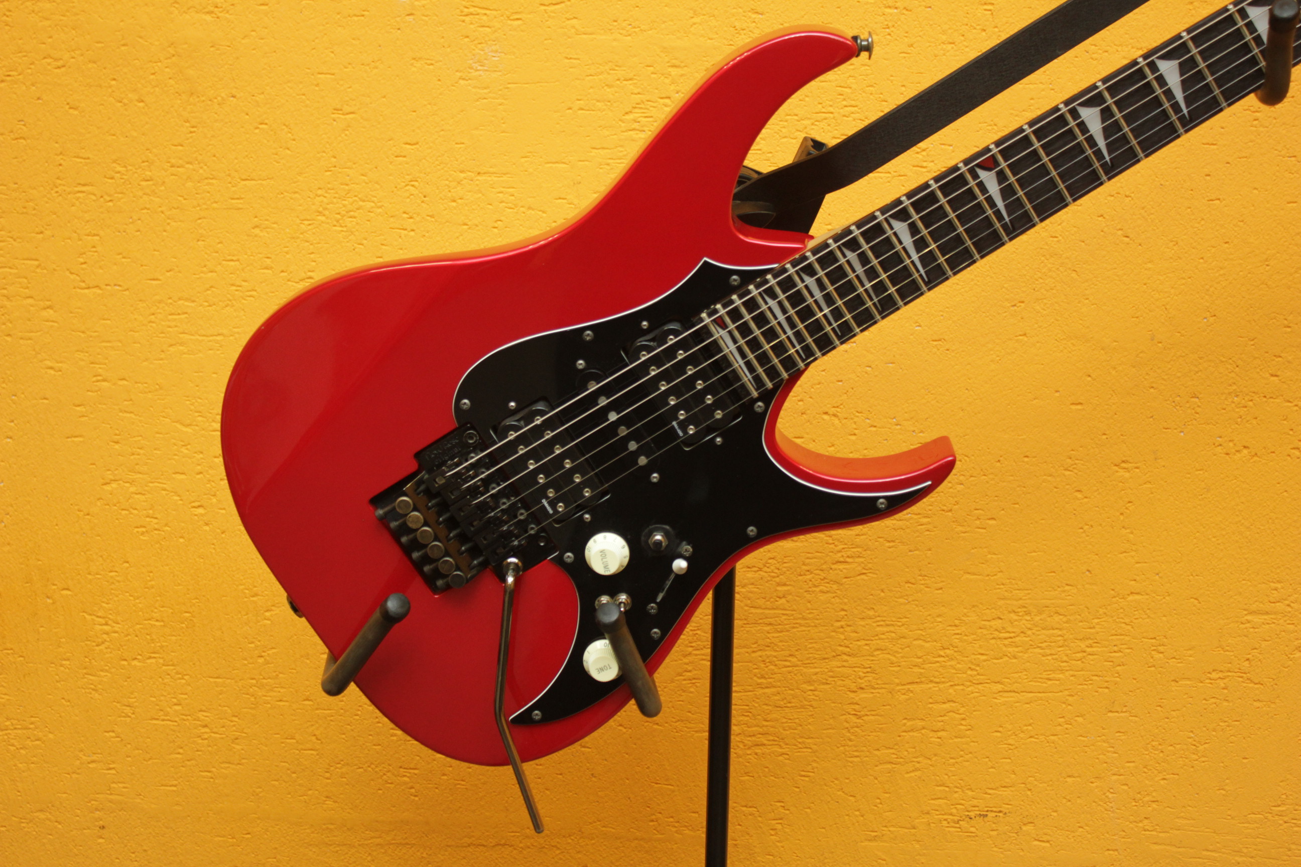 Машинка: Floyd Rose Original, которая безукоризненно держит строй. Звукосниматели: 2X Dimarzio H2 (старая версия Super 3 DP152) и Fender single coil pickup. Установлен киллпот и отсечка датчиков; мастер тон, позволяющий работать как с нижними, так и с верхними частотами.