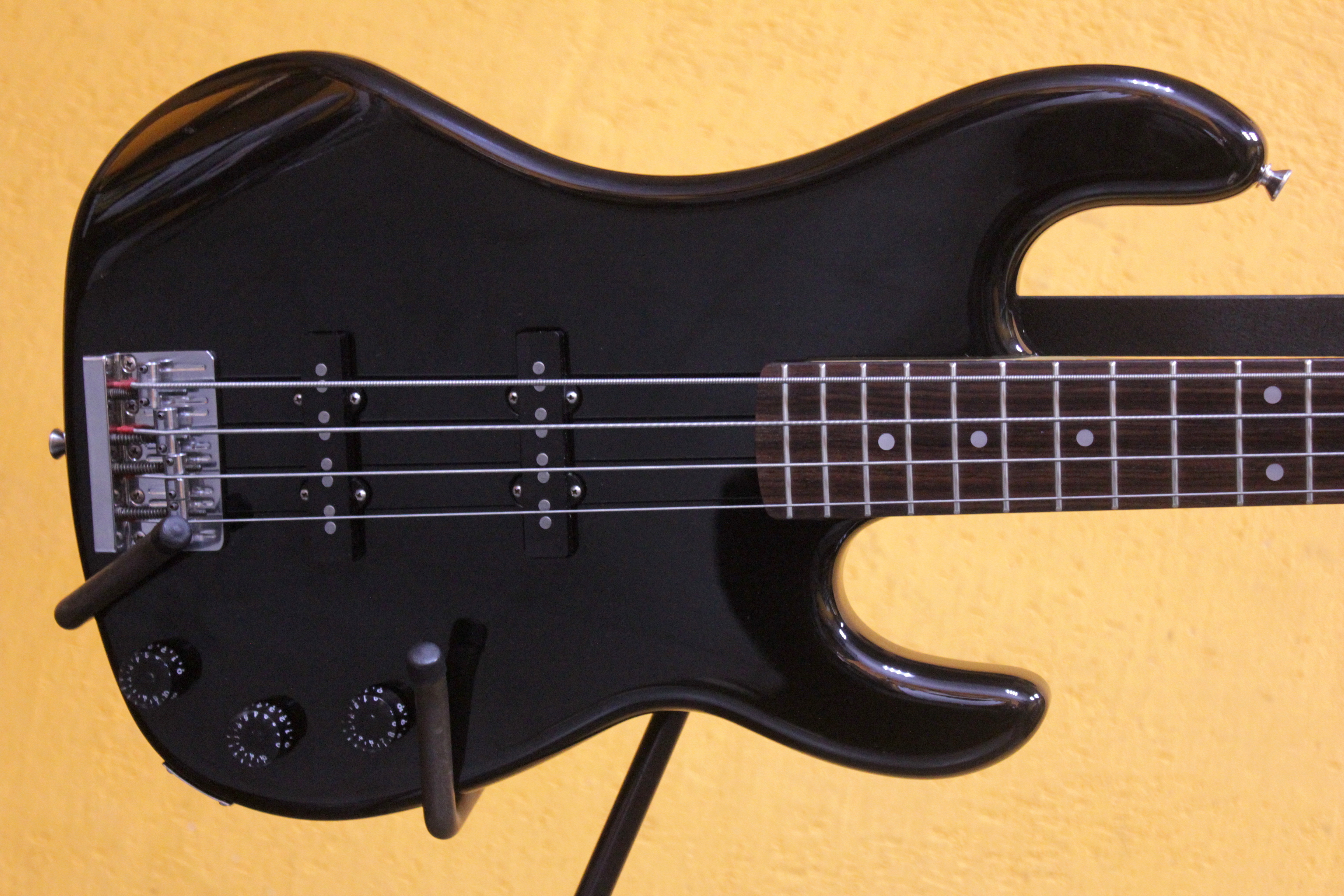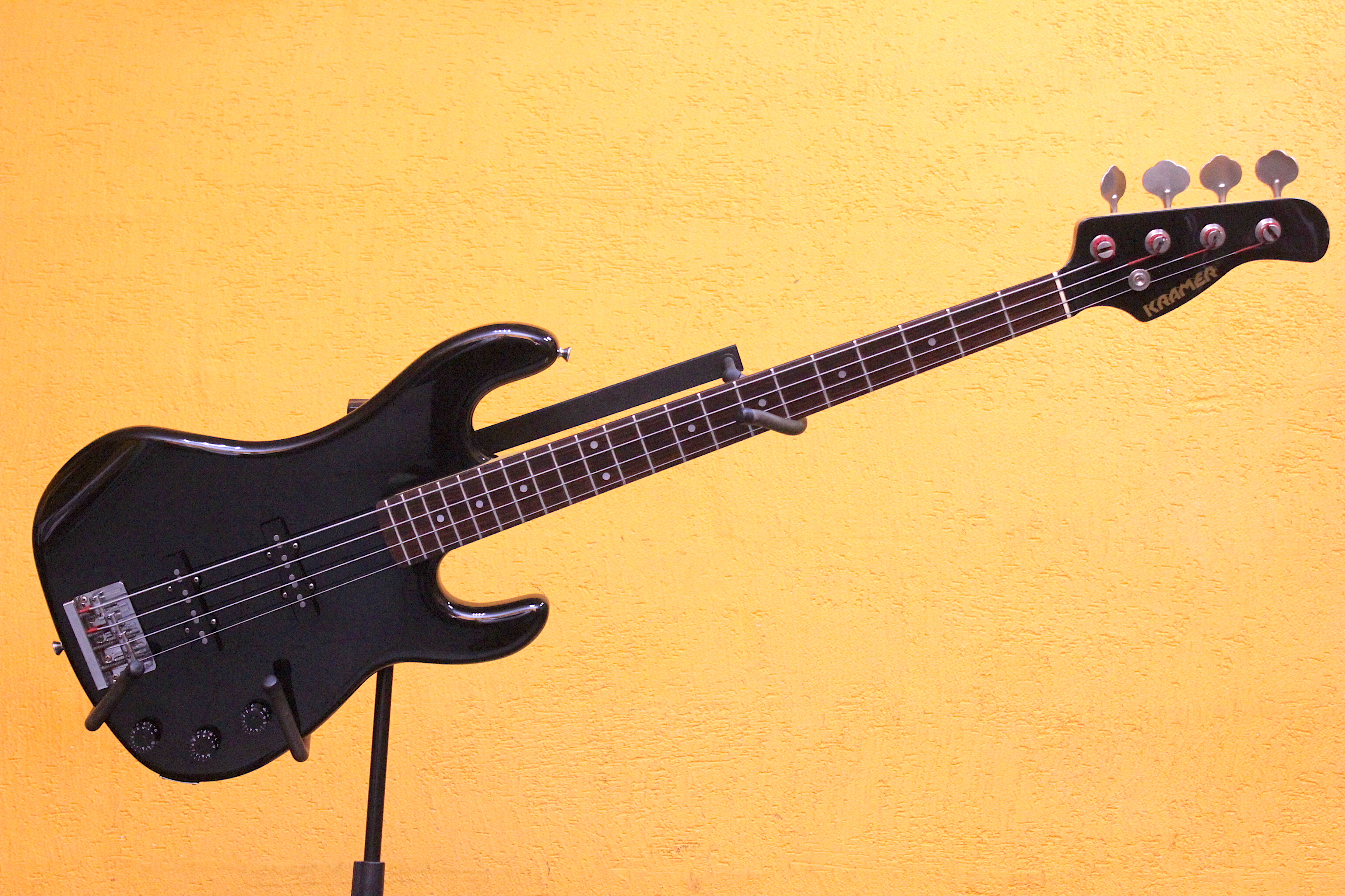 Отдельные модели Kramer из 80ых делались в сотрудничестве с ESP, на их японских фабриках — в основном это добротно сделанные варианты классических дизайнов, как этот стильный чёрный Jazz Bass.