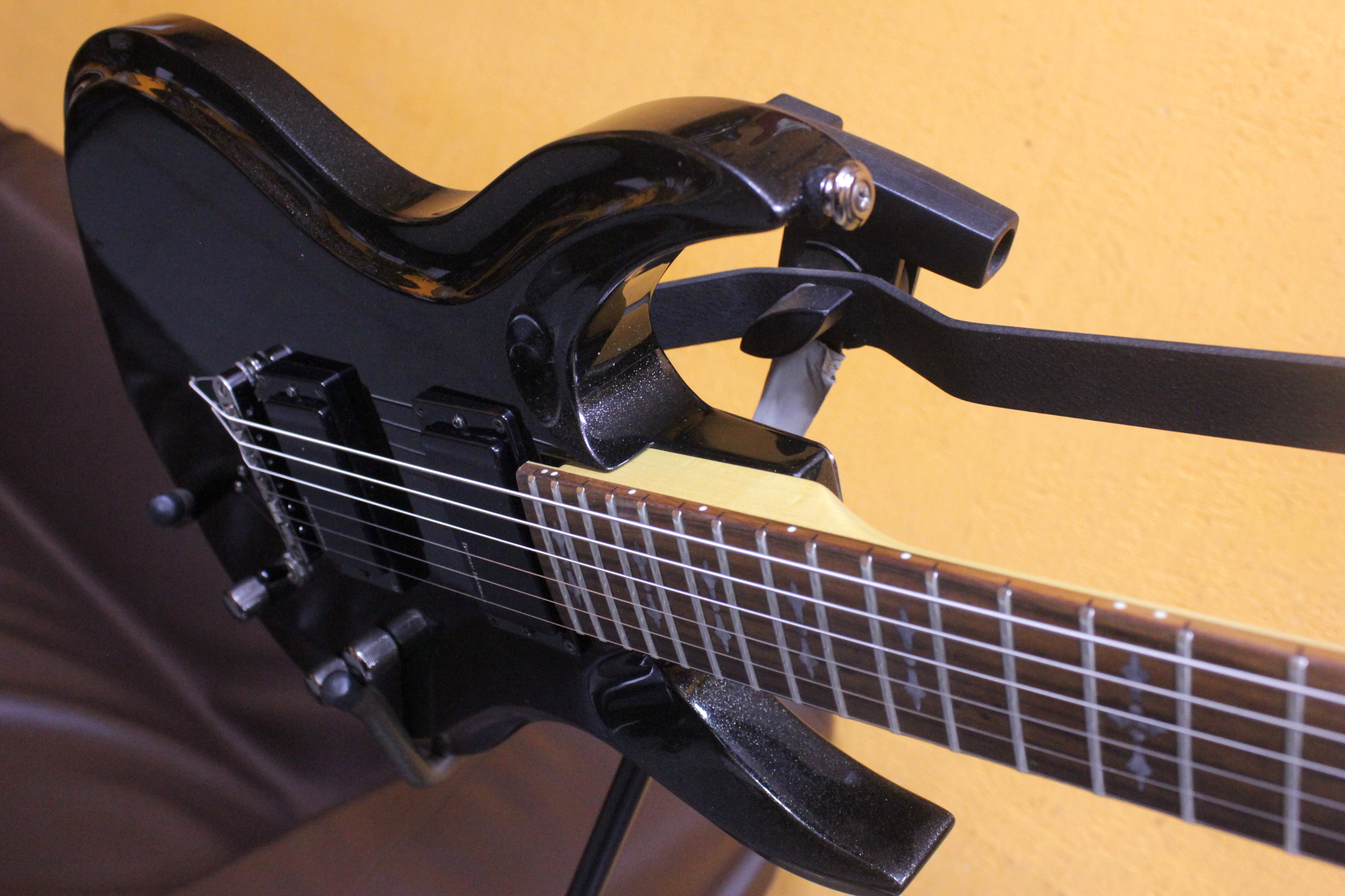 В отличном состоянии, не считая маленького скола на одном из рогов грифа.