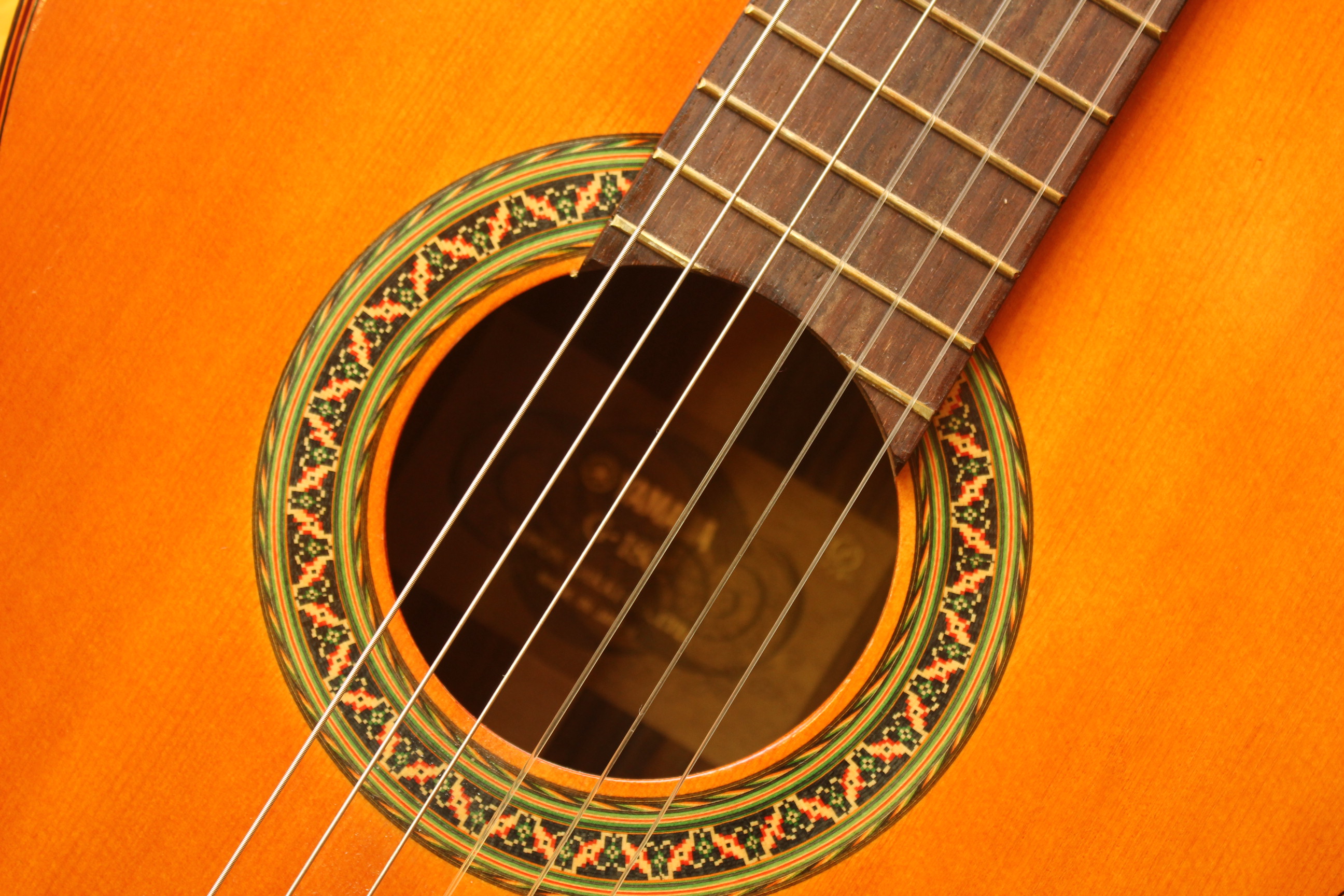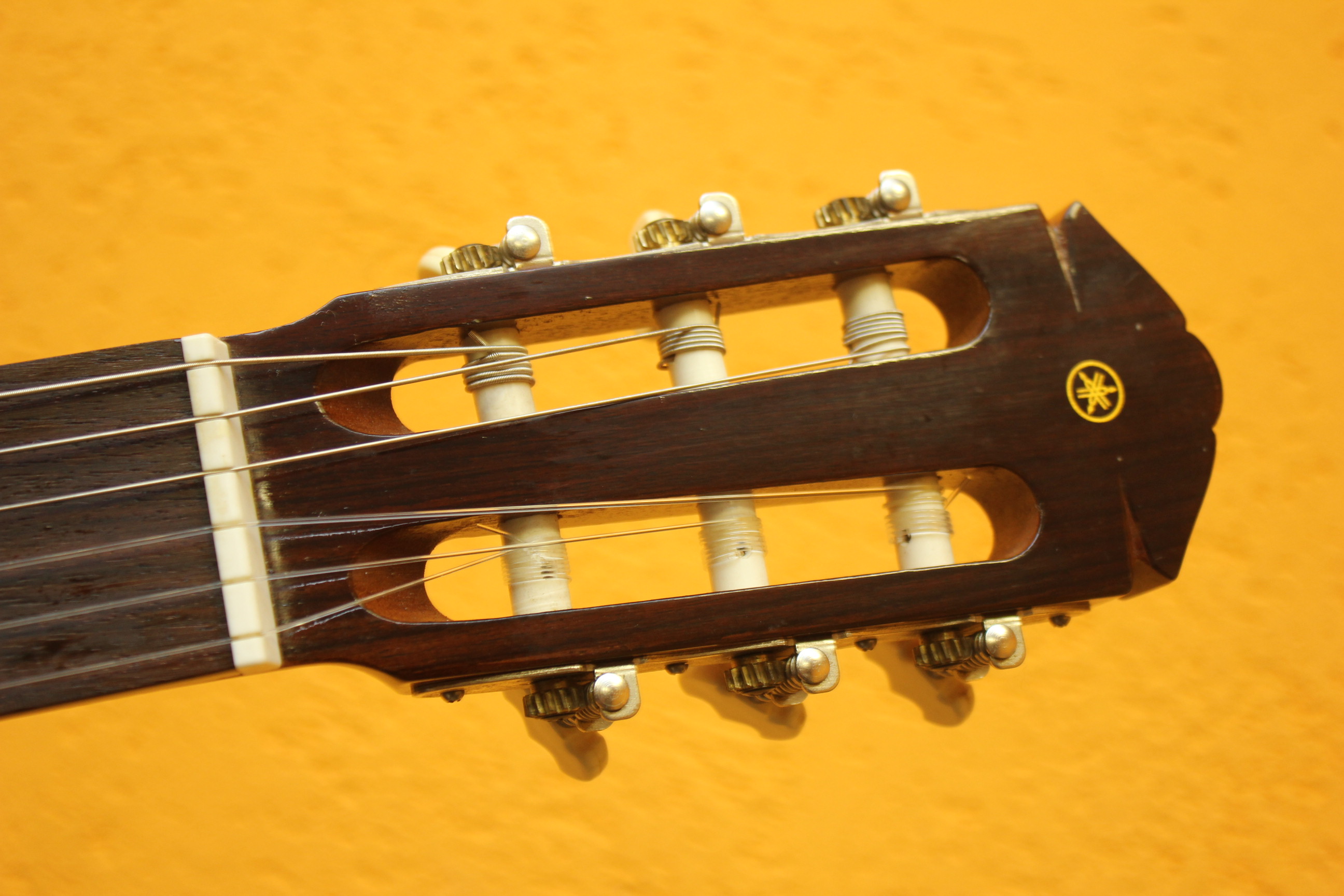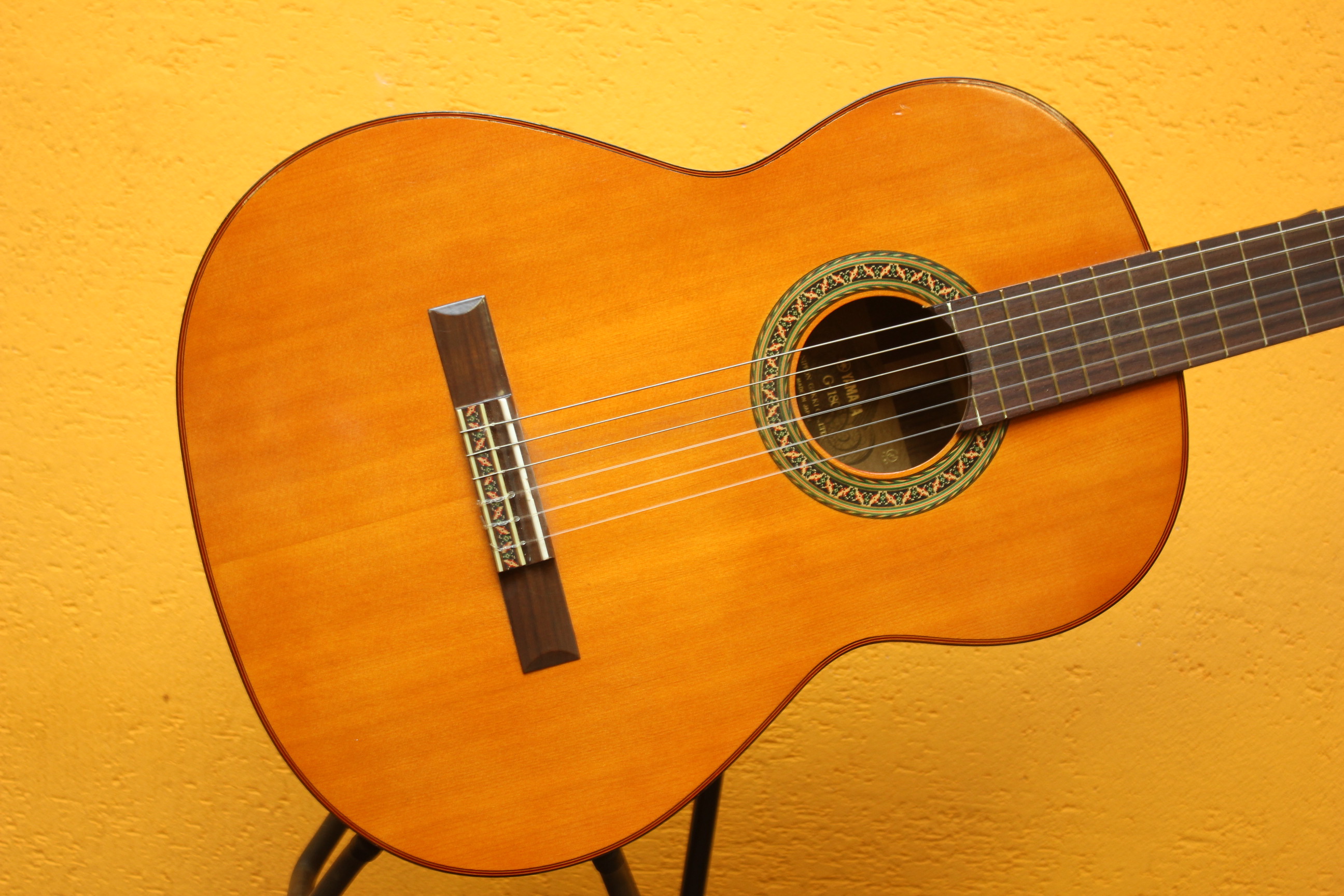 Отличная японская классическая гитара. Верхняя дека гитары изготовлена из древесины ели, гриф из древесины нато с традиционной накладкой из палисандровой древесины. Совокупность таких материалов придает инструменту более яркое, глубокое и сбалансированное звучание с приятными обертонами. Гитара в неплохом состоянии, из минусов — царапина на грифе, след от удара на задней деке.
